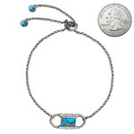 Sleek, simple, and striking, this adjustable bar bracelet is perfect for adding a pop of color to any outfit. Featuring a turquoise inlay with silver-plated framing, the design pairs effortlessly with both casual and dressy outfits. Finished with beads on the pull closure for added flair. Stone color may vary.