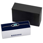 Silver over brass, crafted turquoise, and cubic zirconia. Charm is 1/2" x 1", chain is 8 1/2" long.