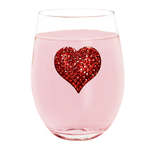 This stemless wine glass sparkles with a bold red jeweled heart. Perfect for celebrations, date nights, or gifting, it adds a romantic touch to every sip. Handwash only to preserve its shine.