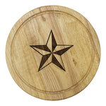 This round parawood cheese board is engraved with a Texas star and includes a hidden swivel drawer with serving tools. Both functional and decorative, its perfect for entertaining with Texas flair.
