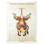 This charming longhorn ornament brings a playful burst of holiday cheer with its bright colors and whimsical expression. Wrapped in festive lights and finished with a shining lone star, it adds a delightful Texas touch to any tree. Its unique design makes it a standout keepsake for collectors and a joyful gift for anyone who loves fun, festive décor.